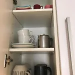電子レンジ,冷蔵庫と台所用品も器具でいっぱいの台所にあります.[Museu Joies]バス停は施設から約5分で歩けます.
